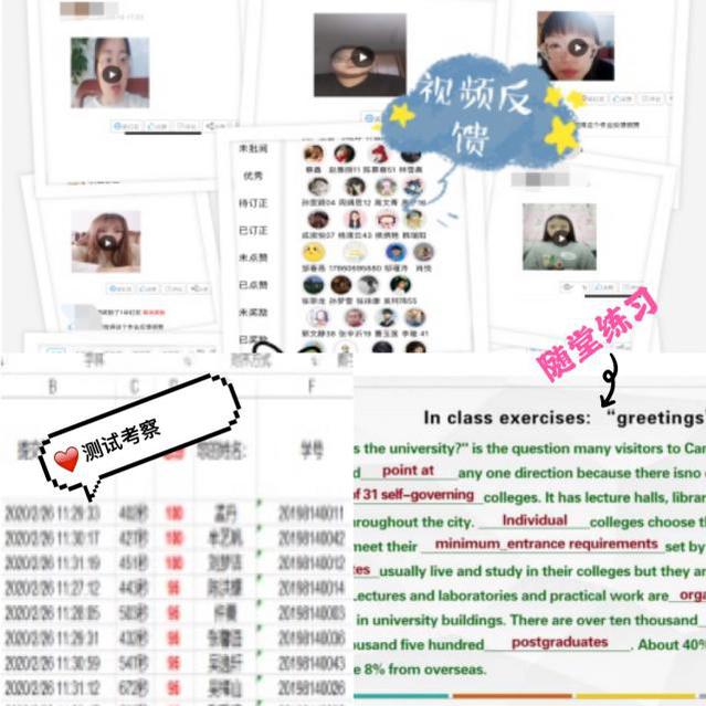 课下,老师们通过微信、钉钉和班级小管家等工具建立多种师生沟通渠道,掌握学生的学习动态,了解学生的学习需求和学习困难,引导学生的学习,解惑答疑。通过批改网、问卷星和班级小管家发布一定的学习任务、小测试等,及时检测学生的学习成果,通过发布测试分数、学生互评和语音指导等进行评学,评价学生学习效果,促进学生学习积极性,提高教学效果。