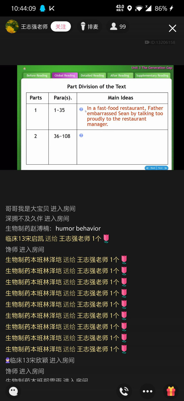 课前,预先发送预习清单:有目的、有针对性地发送课程资源(音频、视频、文档等),让学生们提前预习,熟悉上课材料,做到上课过程有重点地听,有效率地学。同时,老师们精心设计好每一个教学环节,课前在电脑屏幕上打开多个课件、音频,随取随用,最大程度的缩短教学环节之间转换的时间,确保直播教学的流畅性。