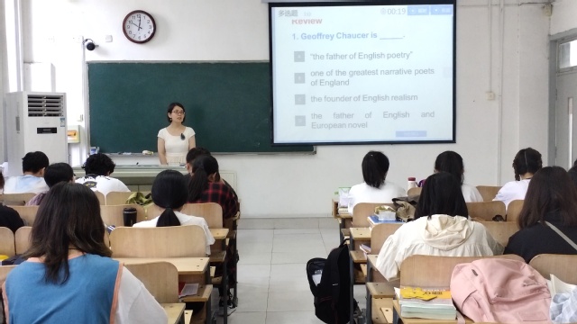 9月24日上午,偷拍论坛 在C208举办智慧教学观摩和评议活动。该教学观摩课由薛丽萍老师主讲,英语专业第二教研室全体老师参加。