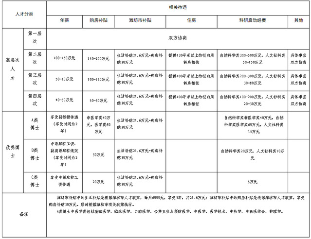 潍坊医学院高层次人才、优秀博士、优秀科研团队引进待遇