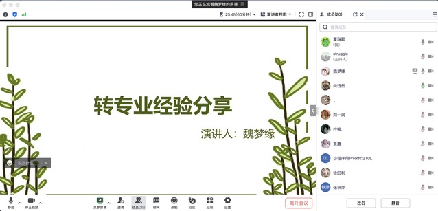 学院邀请已转专业到口腔医学院的魏梦缘同学向小组成员分享利用假期持续学习的经验。着重讲述了强化英语专业学习、加强数学学科的复习力度、提升思政修养,之后就小组成员提出的问题进行解疑答惑,线上讨论气氛热烈。
