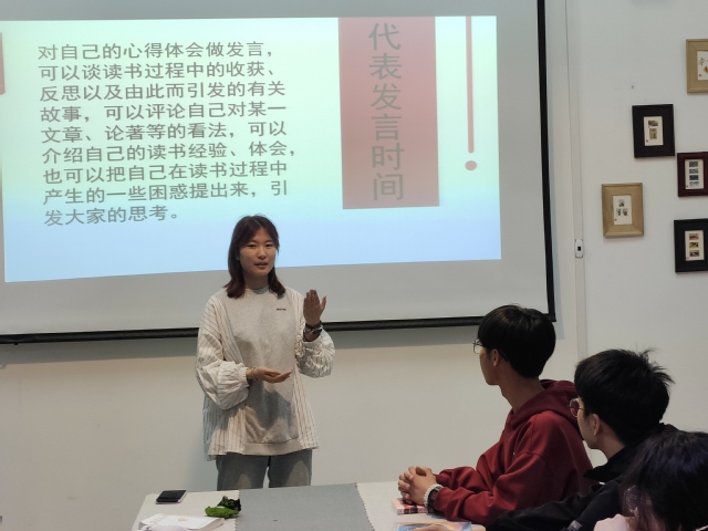 徐田利同学分享了读余华的《活着》时的感动和领悟:“人是为了生活本身而活,而不是为了生活以外的任何事物。”毕志传、郗子皓、臧洵源等同学分别分享了《恶意》《瓦尔登湖》《主角》等经典作品的感受和体会。同学们对读书感悟进行了讨论和分享,大家以“说书”的形式,在茶艺室氤氲茶香的氛围中,让灵魂相互碰撞,让书籍与听者产生共鸣。