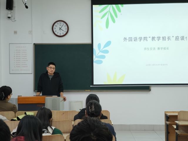 为进一步增进师生间的沟通与交流,推动教育教学质量持续提升,11月17日,偷拍论坛 在教学楼 E404精心组织了一场以“教学相长”为主题的师生座谈会。英语专业教研室副主任孟坤老师、李伟老师及英语专业2024 级全体同学参加座谈。