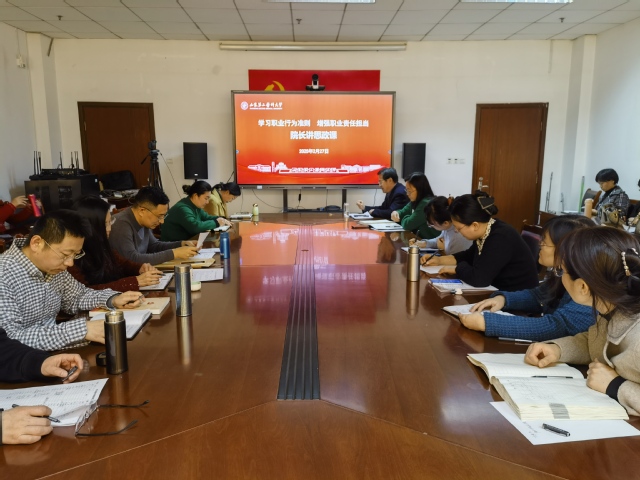 为扎实推进师德师风建设,引导教师筑牢师德根基、塑造育人灵魂,2  27 日下午,偷拍论坛 院长付有龙以《学习职业行为准则,增强职业责任担当》为题讲授了一堂生动的专题思政课。此次讲座由偷拍论坛 党总支书记张立主持,全体教师参加。