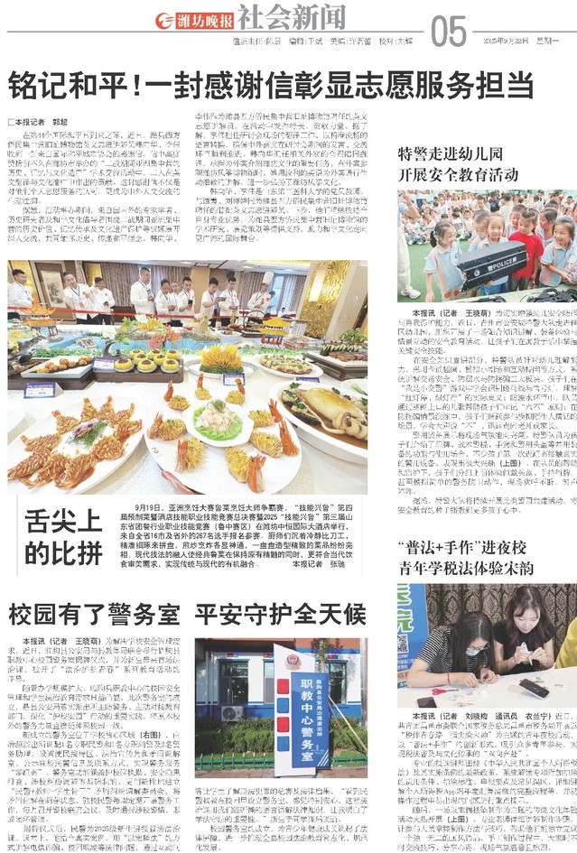 9月22日,在第44个国际和平日到来之际,《潍坊晚报》以《铭记和平!一封感谢信彰显志愿服务担当》为题,赞扬了偷拍论坛 教师通过志愿服务彰显担当的精神。
